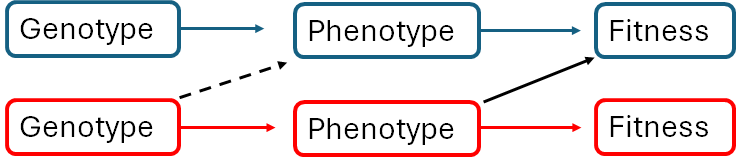 Normally we think that an organism’s genes influence its phenotype, and this phenotype influences its fitness. However, when animals interact, their genes can influence the phenotypes of others (known as “indirect genetic effects”) and their phenotypes can influence the fitness of others (known as “social selection”, and equivalent to W. D. Hamilton’s “benefits” of altruistic behaviours).
